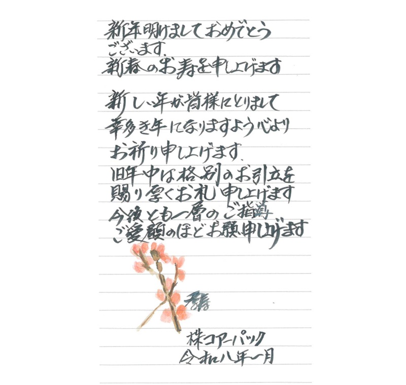昨年も、皆様には変わらぬご愛顧を頂き誠にありがとうございます。